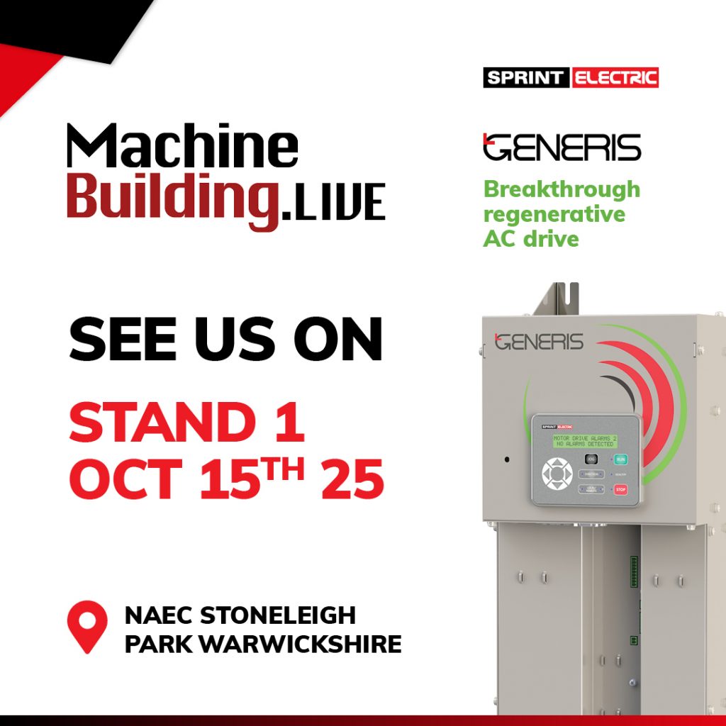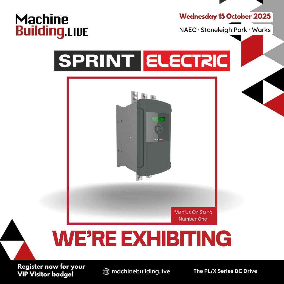 Sprint Electric will be exhibiting on stand 1 at Machine Building Live 2025 on October 15th. The team will be sharing their insights about the future of industrial motor control, showcasing the ultra-low harmonic and fully regenerative AC drive, Generis and the range of DC drives, including the PL/X.